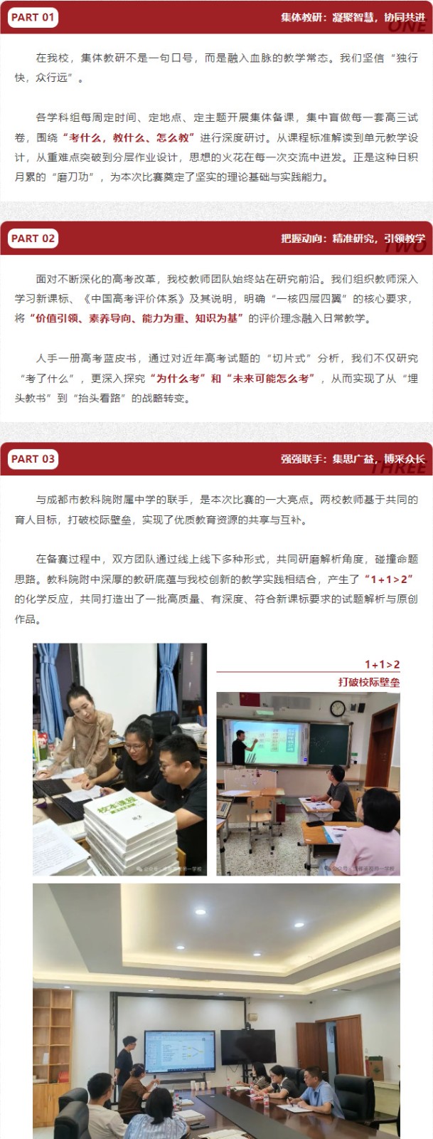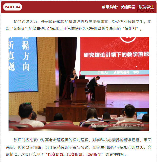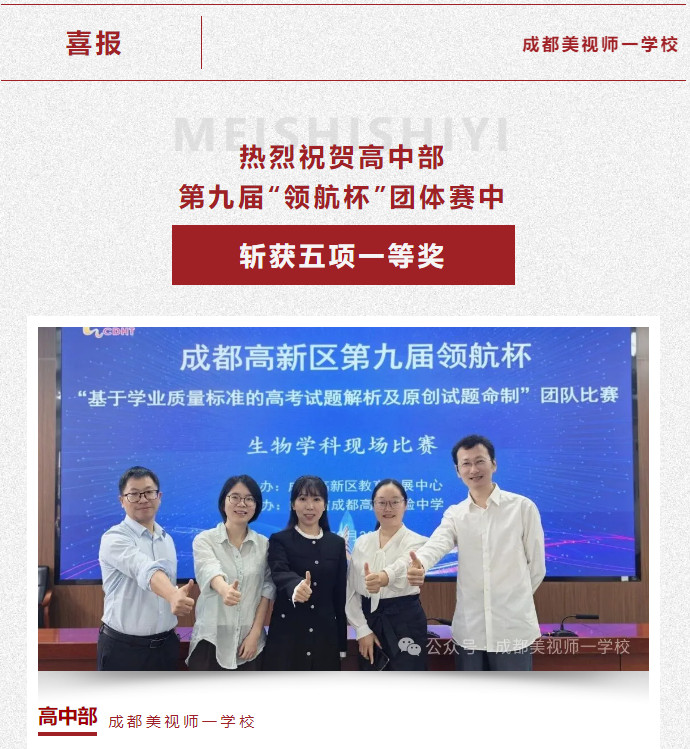 此次在成都高新區(qū)“領航杯”團體賽中的輝煌戰(zhàn)績,是美視師一高中教研之路上的一個閃亮坐標,但絕不是終點。它是對我們過去努力的肯定,更是對未來發(fā)展的鞭策。