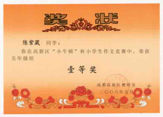 成都高新區(qū)“小牛頓”杯小學(xué)生作文競賽獲獎(jiǎng)名