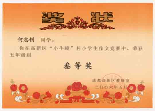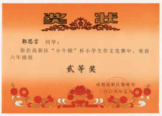 成都高新區(qū)“小牛頓”杯小學(xué)生作文競賽獲獎(jiǎng)名單