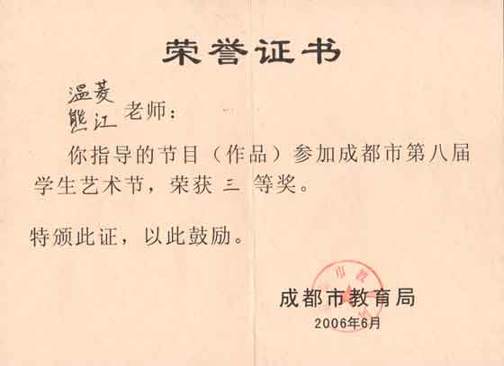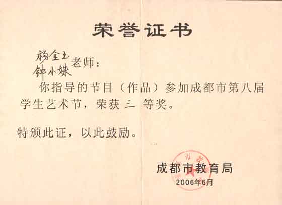 我校參加成都市第八屆學(xué)生藝術(shù)節(jié)獲獎(jiǎng)名單