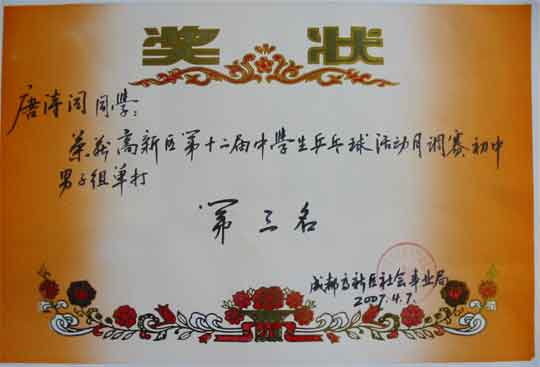 個(gè)人:初中男子組單打 第一名 羅力豪
