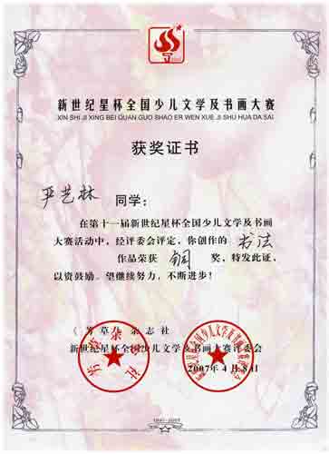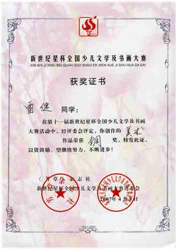 十一屆新世紀(jì)星杯全國(guó)少兒文學(xué)及書畫大賽獲獎(jiǎng)名單
