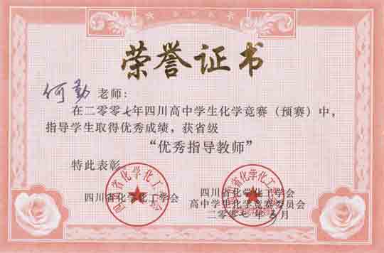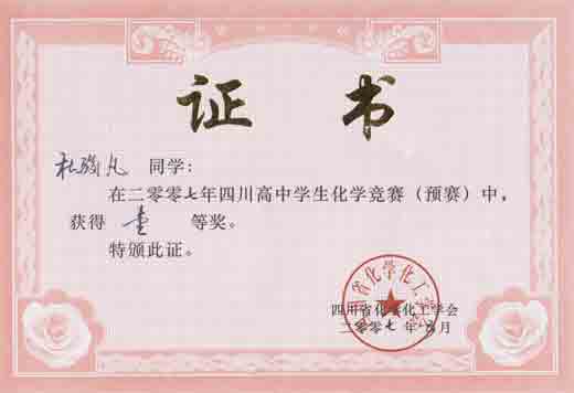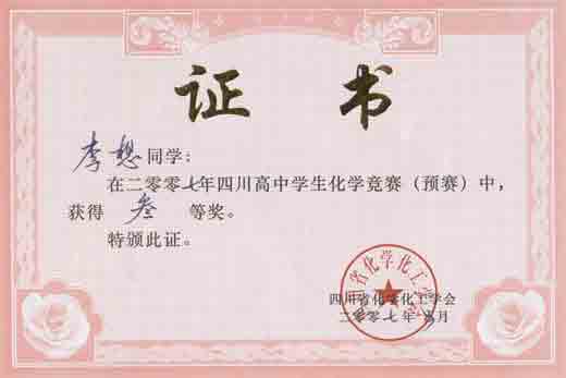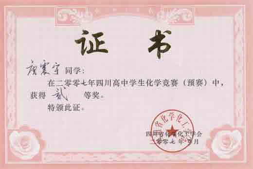 四川高中學生化學競賽預賽獲獎名單