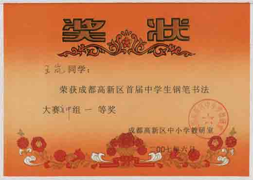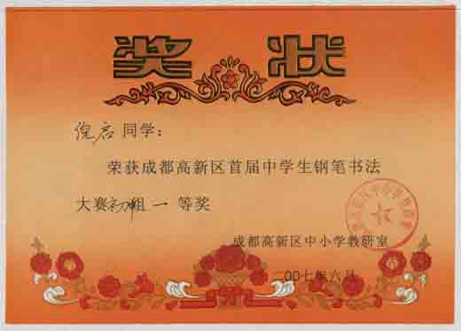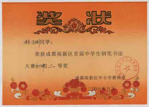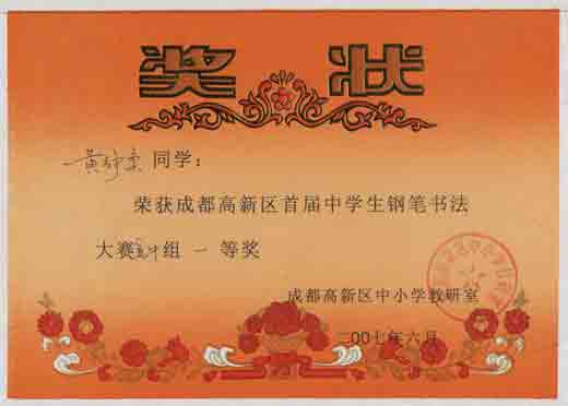 高新區(qū)首屆中學(xué)生鋼筆書法大賽獲獎名單