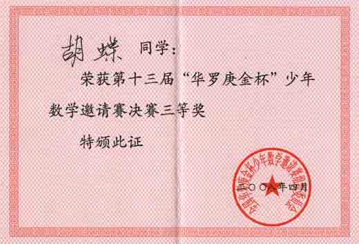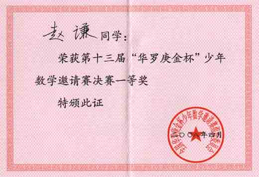 第十三屆“華羅庚金杯”少年數(shù)學邀請賽獲獎名單