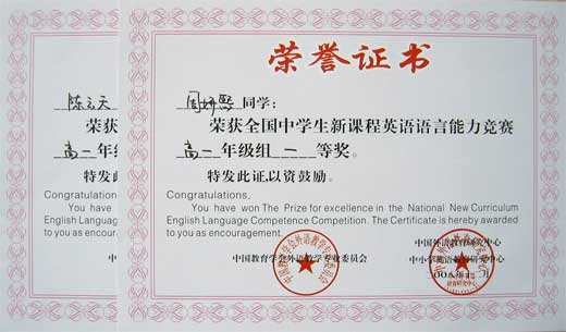 全國中學(xué)生新課程英語語言能力競賽獲獎名單