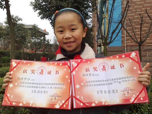 楊源夢潔同學(xué)榮獲四川省舞蹈家協(xié)會第三屆星光燦爛系列活動--青少年兒童舞蹈展演中單人舞《傻妞看戲》表演金獎