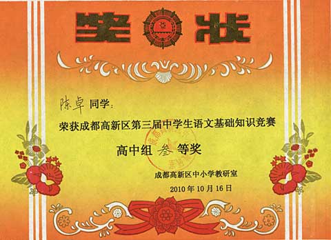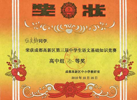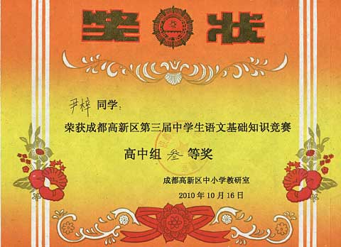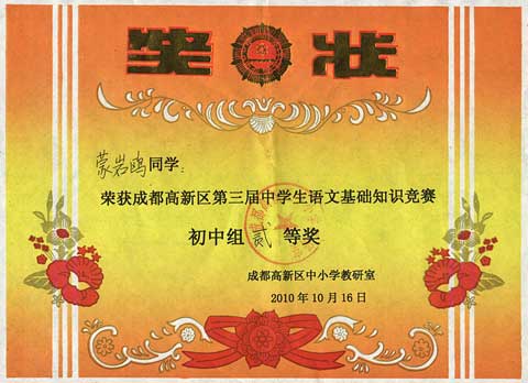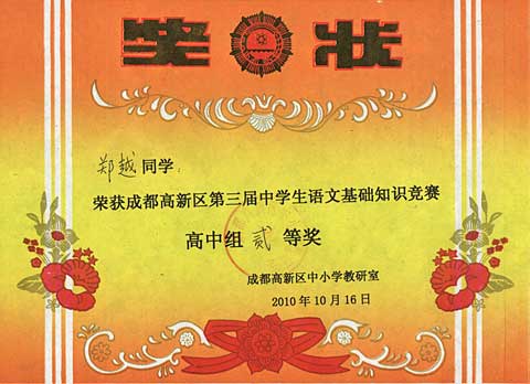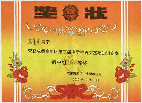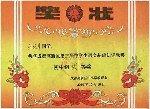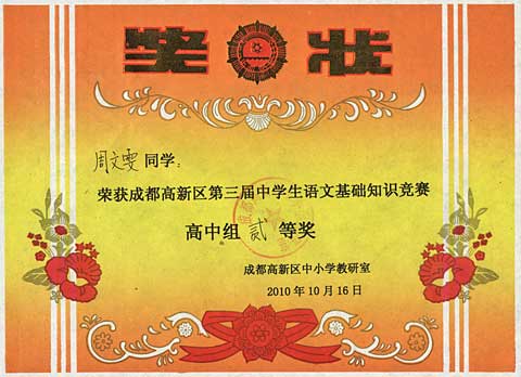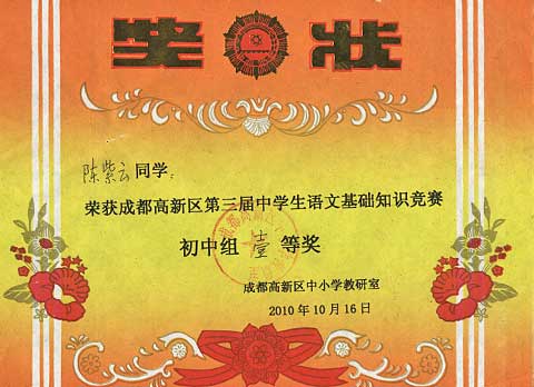 美視學子在成都高新區(qū)第三屆中學生語文基礎知識競賽中獲獎