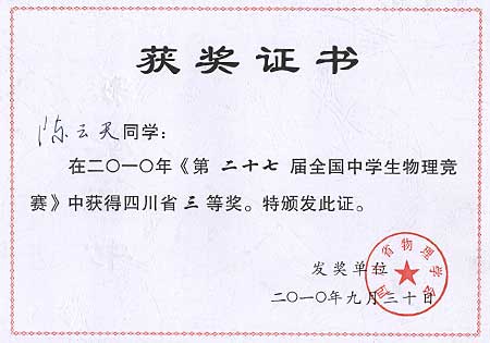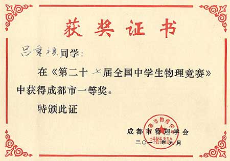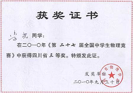 美視學(xué)子在第27屆全國(guó)中學(xué)生物理競(jìng)賽中獲獎(jiǎng)