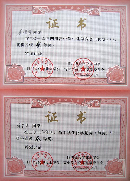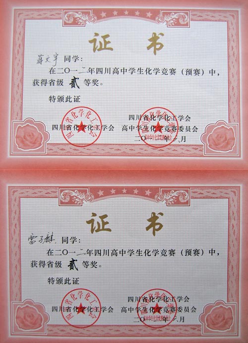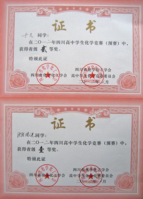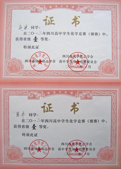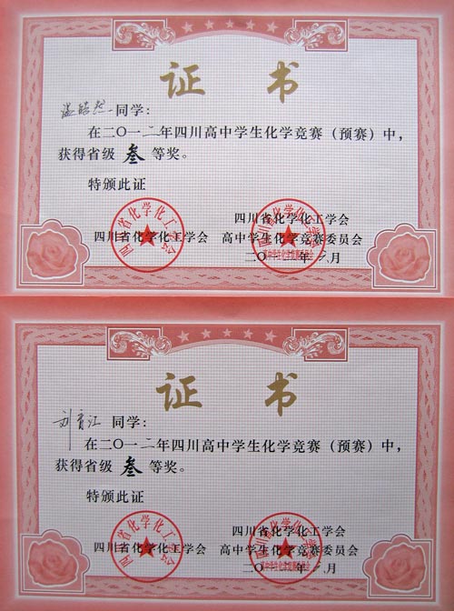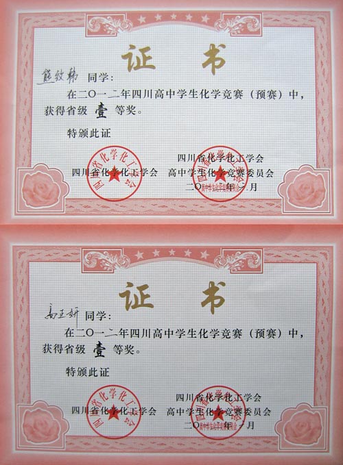 祝賀美視學(xué)子在2012年四川高中學(xué)生化學(xué)競賽(預(yù)賽)中獲獎