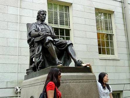 在接下來的7天,我們參觀了哈佛、麻省、耶魯三座大學(xué),在這期間我始終處于一個(gè)時(shí)差狀態(tài)。其中耶魯給我是一種陽光的氣息,哈佛給我的印象最深,有一種古老神秘的氣息,哈佛整個(gè)校園都在綠色之中,關(guān)于哈佛有一個(gè)傳說:在校園中有一座塑料是一位對(duì)哈佛有巨大貢獻(xiàn)的人,相傳只要摸著他的“皮鞋”,在心中許愿就能成功,不要只是限于考上這所大學(xué)。