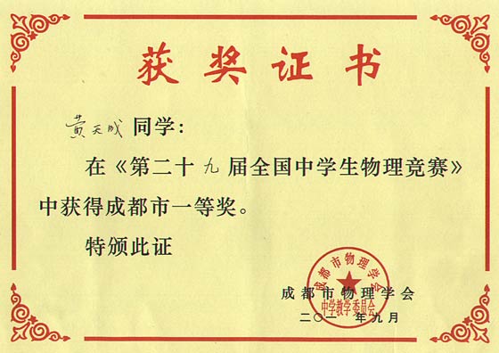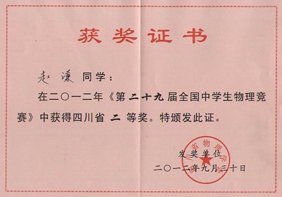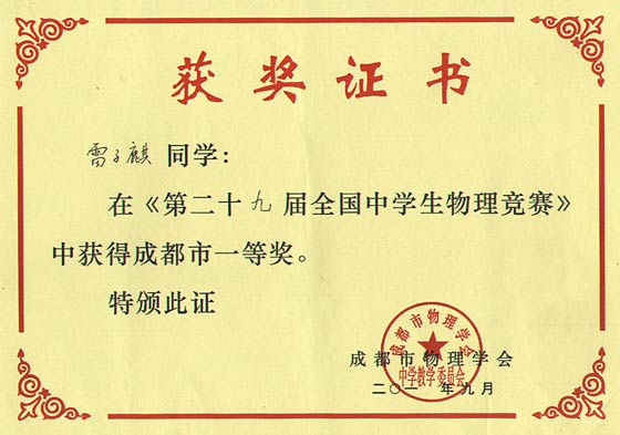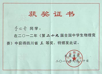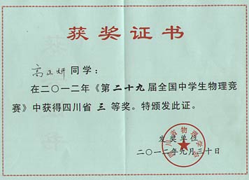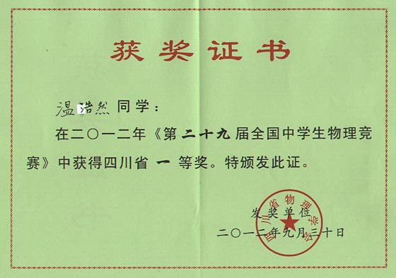 美視學子在第29屆全國中學生物理競賽中獲獎