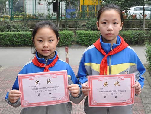 ▲ 劉語柯、劉柯伶同學(xué)-榮獲成都市高新區(qū)第八屆中小學(xué)生運動會女子小乙組跳遠(yuǎn)、實心球比賽第七名