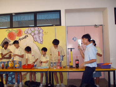 我們?nèi)⒂^了大僑小學(xué),那里的同學(xué)教我們做科學(xué)實(shí)驗(yàn)。有火山、泡泡一和泡泡二,許多的實(shí)驗(yàn),都很好玩。——喻敏琪