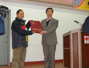 閉營儀式我校向韓國接待方贈送學(xué)校禮物