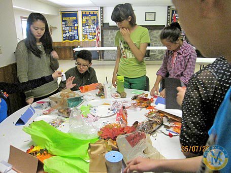 在美國老師的指導下,與美國同學一起制作萬圣節(jié)手工品