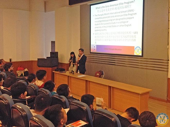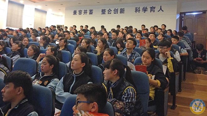 March 20, 2015 afternoon, Principal Xu, Sino-American Elite Program (SAEP) Executive Director Dan Plaut as well as Deputy Executive Director Misha Cao gave grade 9 students of our school a presentation about WHAT is Sino-American Elite Program and WHY choose Sino-American Elite Program in the Academic Hall.
