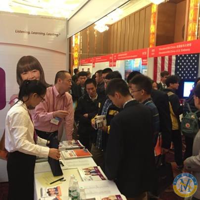 中美英才班的同學(xué)們與參展大學(xué)積極交流,各參展大學(xué)為同學(xué)們解答他們最為關(guān)心的問(wèn)題。