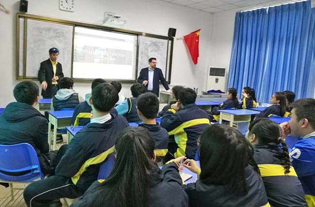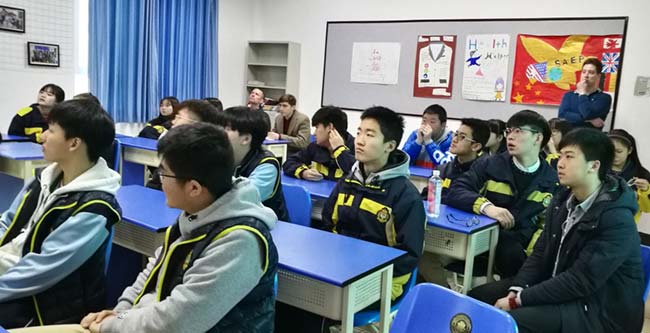 加州路德大學招生主任Dane Rowley先生與中美英才班的同學們暢談國外求學生活。作為國際招生主任,Dane對于國際生在申請大學方面有著非常豐富的經(jīng)驗和深刻的體會。高三同學們在幾個月之后將要踏上異國國土,開始他們的求學之旅。因而同學們就未來大學生活比較關(guān)心的幾個方面向Dane進行了提問,比如:宿舍、費用、校園文化、安全問題以及初到新環(huán)境的不適應(yīng)。Dane以自己的經(jīng)驗和見解詳細地回答了同學們所關(guān)心的問題,并給出了建議。高二的同學們也將在今年下半年開始大學申請,因而Dane向同學們介紹了如何了解學校、選擇學校,如何為大學申請做準備。