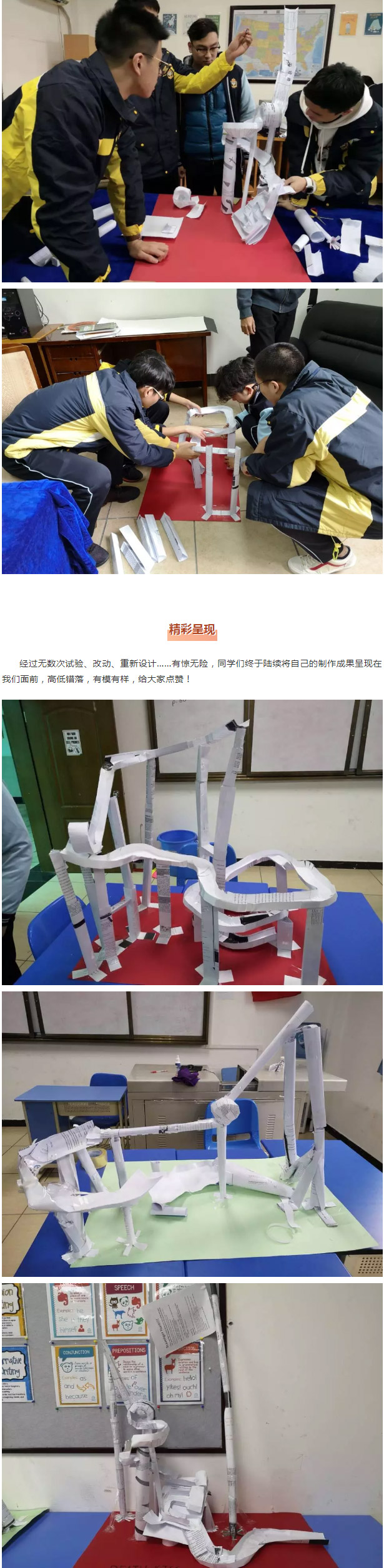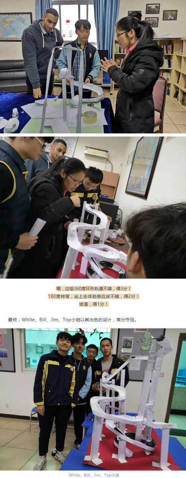 在本輪的STEM挑戰(zhàn)中,他們將用課堂所學(xué)的物理知識運(yùn)用到實(shí)際生活中,并掌握和了解過程中涉及的英語專業(yè)術(shù)語,用英語來解釋團(tuán)隊制作過山車模型的工作原理。