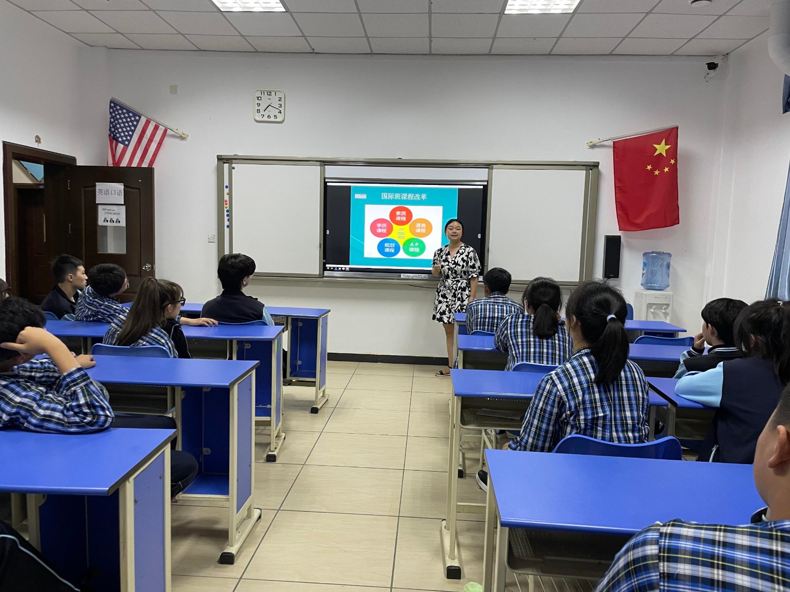 最后,國際英才班主管劉洋老師就國際英才班的課程改革以及國際英才班的常規(guī)管理事宜向同學們作了講解,并給他們提出了6個要求,希望他們能在高中三年突破自己,走向國際。